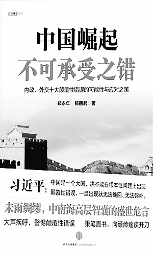 当夏斌、卢峰等学者以“过去”观照“现在”之时,著名学者郑永年、杨丽君则试图通过《中国崛起不可承受之错:内政、外交十大颠覆性错误的可能性与应对之策》一书,提醒“我们不该犯的错误”,该书将目光投射在未来,虽没有直接切入现实,但未必不与我们息息相关。