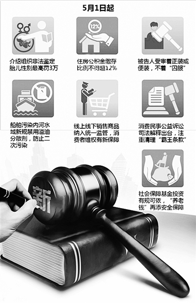 营改增全面实施、社会保障基金新规保障“养老钱”安全、国家进一步整顿非法鉴定胎儿性别行为、《消费民事公益诉讼司法解释》剑指“霸王条款”……5月,一批与你我息息相关的新规开始施行,它们将影响你我的生活。