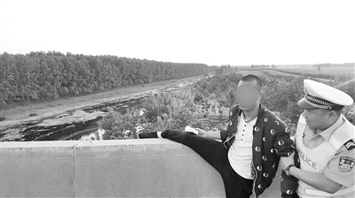 5月3日下午5点多,在京港澳高速公路颍河大桥下养鸭的村民孟先生发现,一名短头发的年轻男子,穿着一件花衬衫,坐在桥栏杆上已经很久了,边上还放着一个包。桥面距离水面有10多米的落差,如果不慎掉下,后果不堪设想,于是孟先生就和这位男子攀谈起来。