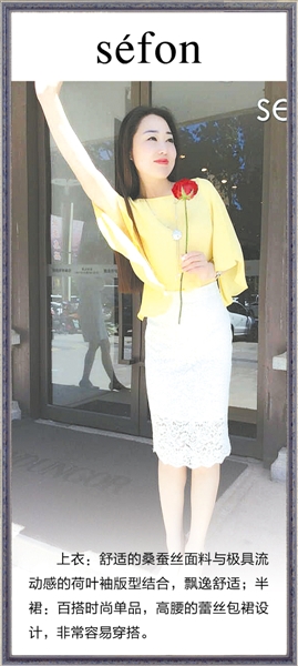 除了连衣裙,舒适的桑蚕丝面料与极具流动感的荷叶袖版型结合,飘逸舒适。搭配上一款高腰的蕾丝包裙,时尚百搭,又显得清新脱俗。
