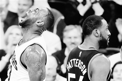 5月18日,詹姆斯(左)庆祝得分。