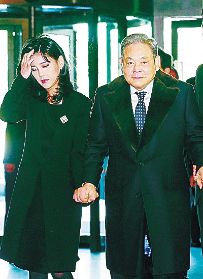 韩国首富李健熙拉着女儿李富真的手。