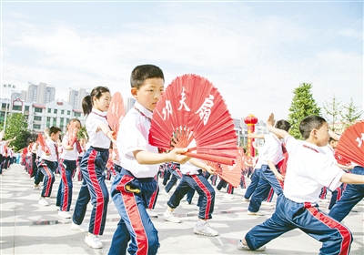 5月18日,2016年漯河市全民健身月启动仪式暨“百城千村”健身气功交流展示活动在市区黄河广场举行。启动仪式上,健身达人、中小学生展示了多种多样的健身方式,吸引众多市民观看。本报记者 杨 光 摄