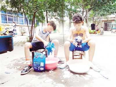 “现在洗的都是自己的衣服,等学会洗衣服了,家里人的衣服也都交给他们来洗。”周女士说,孩子的父母都要上班,所以暑假里就由她照顾两个孩子。她很注重培养孩子的动手能力和自理能力,所以暑假里,她准备将擦桌子、洗碗、拖地、洗衣服等家务活交给兄弟俩做。