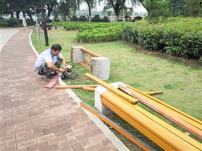 景区工作人员杨先生说,座椅属于公共设施,现在坏了,影响景区形象不说,也给市民带来不便。