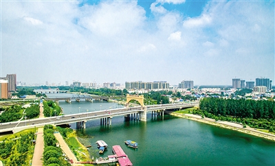 7月13日上午,我市天蓝水碧、景色宜人。今年4月以来,我市明确提出把大气和水污染防治作为当前事关全局、极为重要的一项中心任务来抓。经过3个月的不懈努力,我市环保攻坚取得阶段性成效,空气质量得到改善,优良天数明显增加。本报记者 王晓东 摄