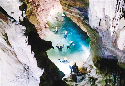 其中一个“黑洞”给“乘组”留下了深刻的印象——从洞顶到洞底垂直落差超过50米,在漆黑的环境中进行悬降,人的心理、身体压力难以用语言表述。最后阶段,“乘组”发现一个巨大的洞厅,足足有2个足球场大,尽头的石墙高达100米,它被命名为“杰里科大厅”。