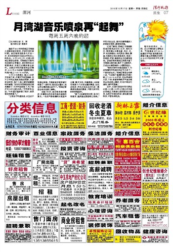 “之前由于河道改造,水压达不到演出标准,月湾湖音乐喷泉暂时停演了一段时间,现在经过蓄水,完全符合播放演出条件了。”西城区管委会有关负责人解释。