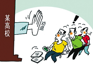 在南京林业大学老图书馆二楼的墙壁上,有个公告张贴栏。该校2015年下半年作退学处理的18名本科生名单被公示在这里。据了解,此举属江苏高校首例。该公示一经张贴,让不少学生很紧张,“学校这招逼得很多不认真学习的同学不敢再继续混日子了。”(《中国青年报》)