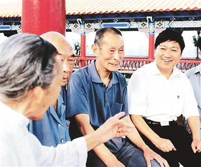 王宏斌(右一)与村民交谈。