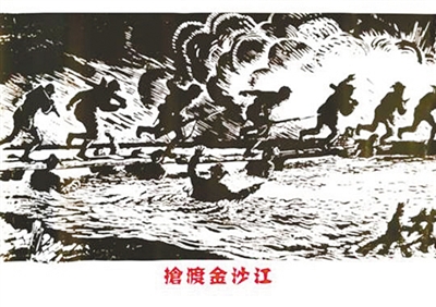 为纪念长征胜利80周年,湖北省宜昌市退休干部艾道新历时3个月制作的剪纸作品——《长征组图》日前正式亮相。该组图长56米,象征56个民族大团结。艾道新是一名多才多艺的艺术家,在篆刻、收藏、书法、剪纸、楹联、绘画、烙画等领域都有建树,尤以剪纸成就最高。图为抢渡金沙江。(中新网)