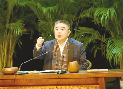 11月12日,在市科技文化艺术中心,钱文忠教授用幽默、生动的语言,为听众讲解国学。本报记者 王海防 摄
