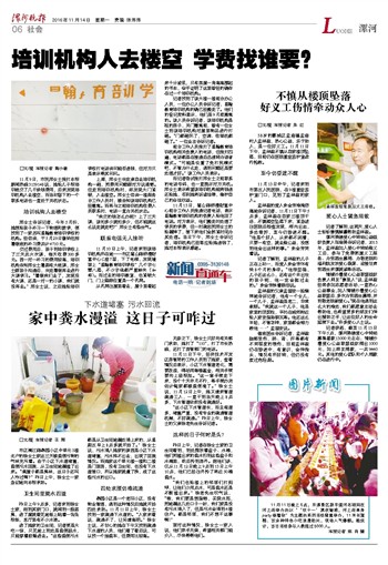 11月9日,市民邢女士拨打本报新闻热线3139148说,她给儿子报培训班交了几千块钱费用,后来发现培训机构人去楼空,而当初留下的一个联系电话也一直处于关机状态。