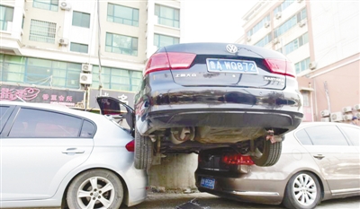 12月4日下午,在济南黄台南路上,一名男子在倒车时,不慎从1米高的台阶跌落,“骑”上台阶下停放的两辆轿车,所幸没有造成人员伤亡,三辆车不同程度受损。据了解,该男子大约50岁,在倒车时错把油门当成了刹车,一脚踩下去倒过头,骑上了台阶下的另外两辆车。(新华网)