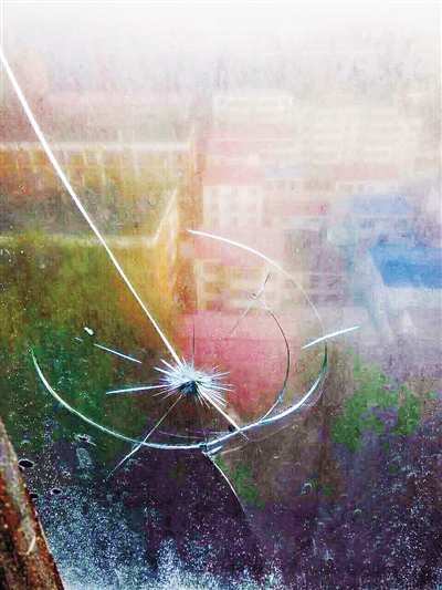 昨日上午,记者在肖先生家看到,玻璃上的“弹孔”还在,直径约1厘米,被肖先生用泡沫板挡了一下。虽然此处窗户安装的是双层加厚玻璃,没有碎掉,但肖先生依然心悸:“实在是太可怕了,在家都没有安全感。”