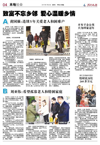 A 黄国强:连续5年关爱老人和困难户