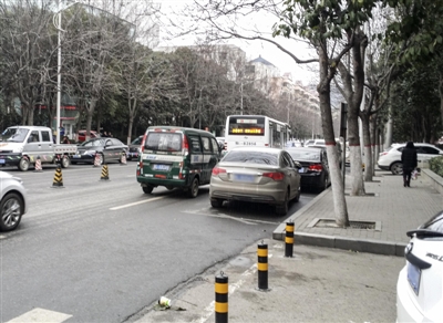 2月20日,有市民向本报反映,市区黄山路市三院附近停车位全部取消,但仍有不少车辆停放。