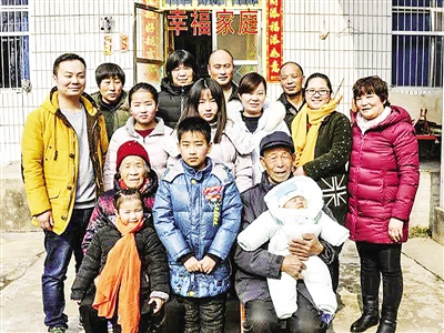 2月22日,在北京工作的网友“平西”晒出了一张四世同堂的全家福照片,并配以文字:这是上周在漯河舞阳老家拍摄的。暖风和煦的农家小院里,一家人围在两位老人周围,我爷爷抱着刚过完百天的重孙,脸上挂满了笑容。