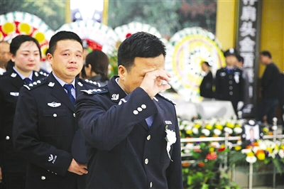4月14日凌晨2点多,市公安局召陵分局案侦大队年仅40岁的侦查员王清华,在办公室突发心梗,经抢救无效,倒在了工作岗位上。4月16日,我市公安民警以及群众代表千余人来到市殡仪馆,送别王清华。 闫雅丽 摄