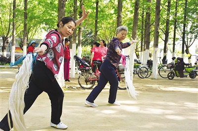 初夏时节,阳光正好,微风吹拂。树荫下,人们挥宝剑、舞拂尘,舒展筋骨;年轻人换上背心短裤,开展激烈的篮球赛;门球场上,老人们戴着遮阳帽,沉稳挥杆,与其说是为了赢得一球,不如说是为了相聚相伴,在绿荫里享受这美好时光。
