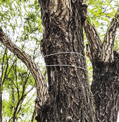 5月8日下午,记者将此事反映给市园林处。一位工作人员说,铁丝会对树木的生长造成影响,已经派工人前去查看,尽快拆除铁丝,给树木“松绑”。
