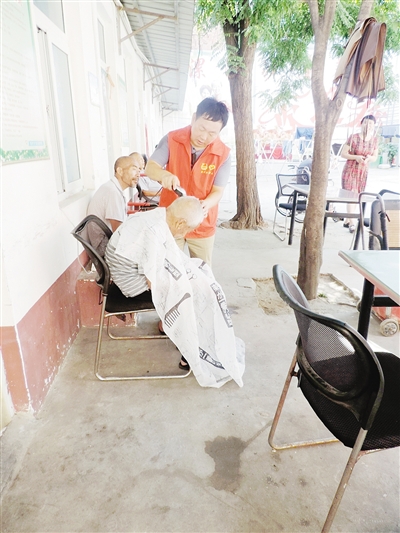 7月23日,漯河五高志愿者来到市沙澧养老院开展志愿服务。马永康 摄