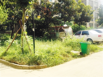 8月22日上午,记者赶到该小区,一进大门便看到小区里杂草丛生,干枯的落叶随处可见。道路两旁的绿化带、小花园内还夹杂着废纸、烟盒、方便袋等生活垃圾。一些绿地也被居民种上了蔬菜。