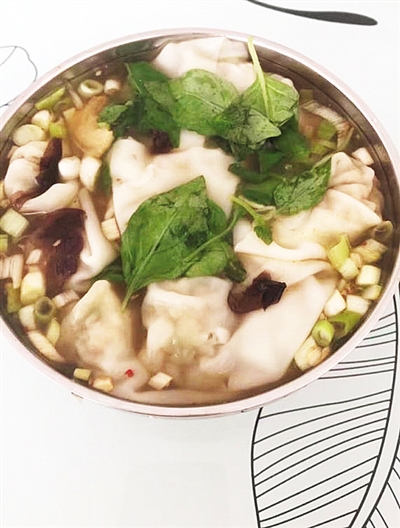 “馄饨包好后就可以做馄饨汤了。碗里放入撕碎的紫菜、香葱、胡椒粉、盐就可以了,如果时间充足的话还可以买来鸡骨熬汤。”说着秦女士便将馄饨放入烧开水的锅内开始煮了,同时可以用开水冲碗里的汤料,待馄饨皮呈透明状煮好后捞入碗中,一碗美味的馄饨就做好了。
