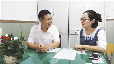 赵自林和赵靖(右一)在一起谈心。