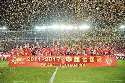 10月22日晚中超联赛第28轮,争冠悬念终结了。广州恒大在主场5∶1击败贵州恒丰智诚,同时上海上港主场1∶2负于广州富力,恒大在联赛还剩两轮的情况下,领先第2名上港9分之多,提前锁定2017赛季中超联赛冠军。这是恒大连续7个赛季夺得中超冠军奖杯,不断刷新自己创造的历史。
