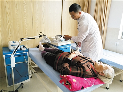 记者来到位于二楼的康复科,看到了已经在此居住了两年多的葛四妮。葛四妮今年84岁了,由于腿部患有骨增生,腿脚不太方便。康复科的医生屈增福小心翼翼地让老人平躺在治疗床上,为老人的腿部进行红外线照射治疗。“这样的局部加热,可以促进血液循环,为老人舒缓疼痛。”屈增福告诉记者。