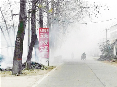 本报讯(记者 张晓甫)“这儿的烟真大,骑电动车也没法走。”11月16日上午,记者在郾城区孟庙镇关徐村的路上看到,一股股浓烟正扑向路上,村民有的捂鼻而过,有的等待浓烟消散后骑着电动车疾驰而过。
