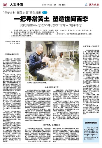 谈起现在最大的心愿,任明兆向记者表示,他想通过本报寻找对泥塑有浓厚兴趣的“有缘人”,一旦遇到,他定会倾囊相授、毫无保留。