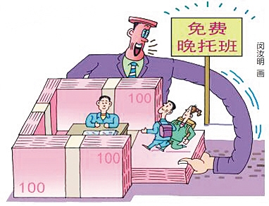 从11月20日开始,杭州滨江区推出免费课后服务,一直到傍晚5点,运行成本全部由财政负担,不向家长收取任何费用。免费课后服务相当于校内免费“晚托班”,不但经济实惠,而且安全靠谱。目前,这项服务已在闻涛小学、丹枫实验小学、东冠小学一至三年级中试点推行,计划下学期推广到全区小学一至三年级。(《钱江晚报》)