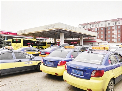 昨日上午10点多,记者来到位于市区泰山路与淞江路交叉口附近的中石油CNG加气站看到,几十辆等待加气的车停在附近,把加气站围得水泄不通,场面十分壮观。其中,出租车和公交车最多,还有一些私家车。