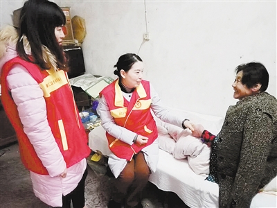宋爱凤家住大新街,今年77岁,是一名空巢老人。因为儿女不在身边,宋爱凤老人日常生活中有许多不便之处。社居委工作人员来到老人家中时,她正坐在床上取暖。看到有人来看望,老人十分开心。