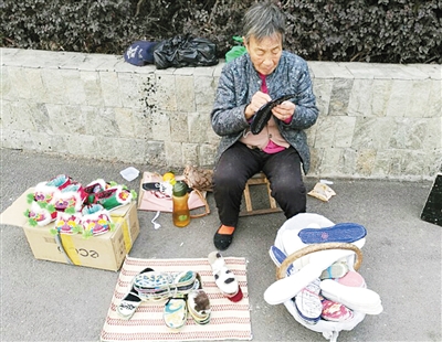 “买我的鞋垫都是现场试大小,合适了再买,穿着舒服才行。”张俊说,每天闲着没事,做一会儿针线活,和来往的行人聊上两句,心情特别舒畅。