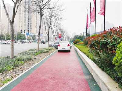 3月19日,一辆轿车违规停在市区牡丹江路的人行道上。