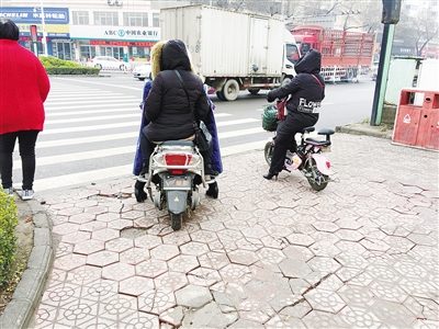 市区解放路与湘江路交叉口的安全岛上面,地砖破损严重,一些地砖出现松动,车辆或行人通过时,会左右晃动,雨后则会溅起一片污水。