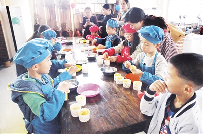 小记者在米罗阳光餐厅做纸杯蛋糕。