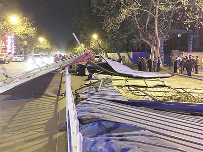 据现场目击者介绍,事发时间是傍晚6点40分左右,这些铁皮是路边一处楼房楼顶的隔热层。“呼啦啦一下子掉下来了,吓人哩很,幸亏当时没有人员经过。”目击者说。