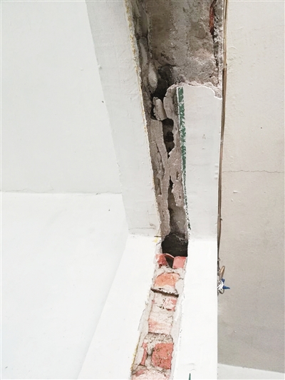 记者在刘先生的厨房里看到,一些墙体稍微用手抠一下,成块的墙漆就脱落下来,直接露出了里面的水泥和红砖。“20世纪九十年代建设的房屋标准和现在的不一样,”正在装修的工人马师傅告诉记者,那个时候水泥比较少,大多数是用沙子砌的墙,“房改房”的结构基本上都是砖混结构。“稍微用手动一下,里面的沙子就成片掉下来。”马师傅说。