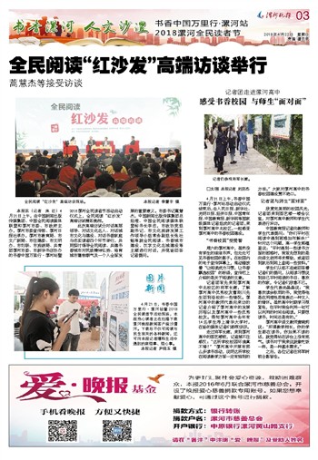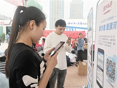 4月21日,书香中国万里行·漯河站暨2018全民读者节活动现场,本报热心读者正在扫描下载漯河晚报新闻客户端沙澧河。下载后不仅可阅读与民生有关的各种新闻,还可向本报记者爆料生活中遇到的麻烦事、烦心事。