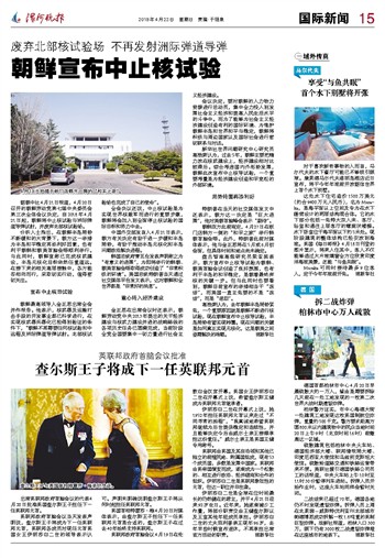 中国外交部发言人4月21日表示,朝方有关决定有助于进一步缓和半岛局势,有助于推动半岛无核化和半岛问题政治解决进程。
