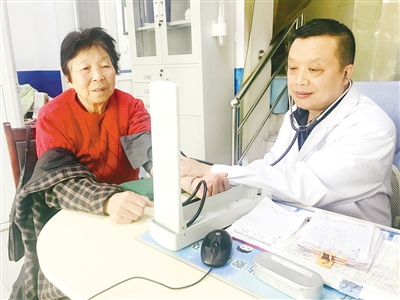 4月24日上午8点,记者来到河滨社区卫生服务站。“王医生,给我量一下血压吧,早上起来感觉有点头晕。”家住银河湾小区的刘老太边伸出胳膊边跟王宝说着自己的病情。“是有点高了,药不能停啊,最近要注意,坐下、站起来都要慢点……”王宝说。