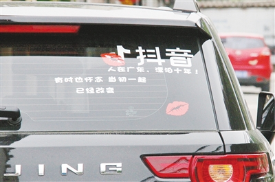 一些车上贴的“内涵段子”“抖音”标志