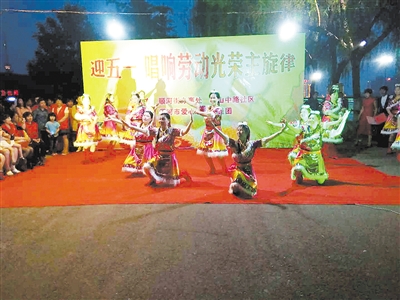文艺队表演形式多样,声音洪亮,气势磅礴,有舞蹈、男声独唱、女声独唱、小品、戏曲等。节目多彩多姿,现场精彩纷呈,为劳动者和社区居民提供了一场视觉盛宴,展示了社区居民的风采,促进了社区大家庭的和谐发展。