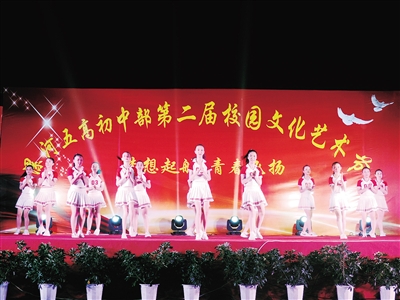 该校的相关负责人表示,这是学校的第二届文化艺术节,在海选的时候,共有90多个节目。通过学校专业老师和相关领导最后定夺,在这次文化艺术节上共有三个篇章、28个节目出演。除了文艺演出以外,这次文化艺术节还有绘画、书法、作文等展出。