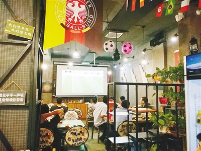 世界杯期间,除了单独在家看球赛的球迷,我市有不少球迷朋友更喜欢聚在一起看球。在紧张激烈的比赛中,跟一众好友一边撸串一边喝啤酒一边为自己支持的球队振臂高呼、加油呐喊。市区一些饭店、夜市、咖啡馆就瞄准了这个顾客群体,围绕世界杯开展了营销。