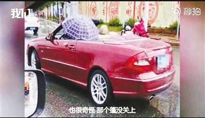 近日,持续强降雨影响着广西南宁,意外的是,有人竟然因为强降雨而走红。根据网友拍摄的视频显示,一辆奔驰敞篷车在雨中行驶,只见驾驶员优哉游哉地打着一把伞在开着车,还不忘发抖音自我调侃。(新华网)